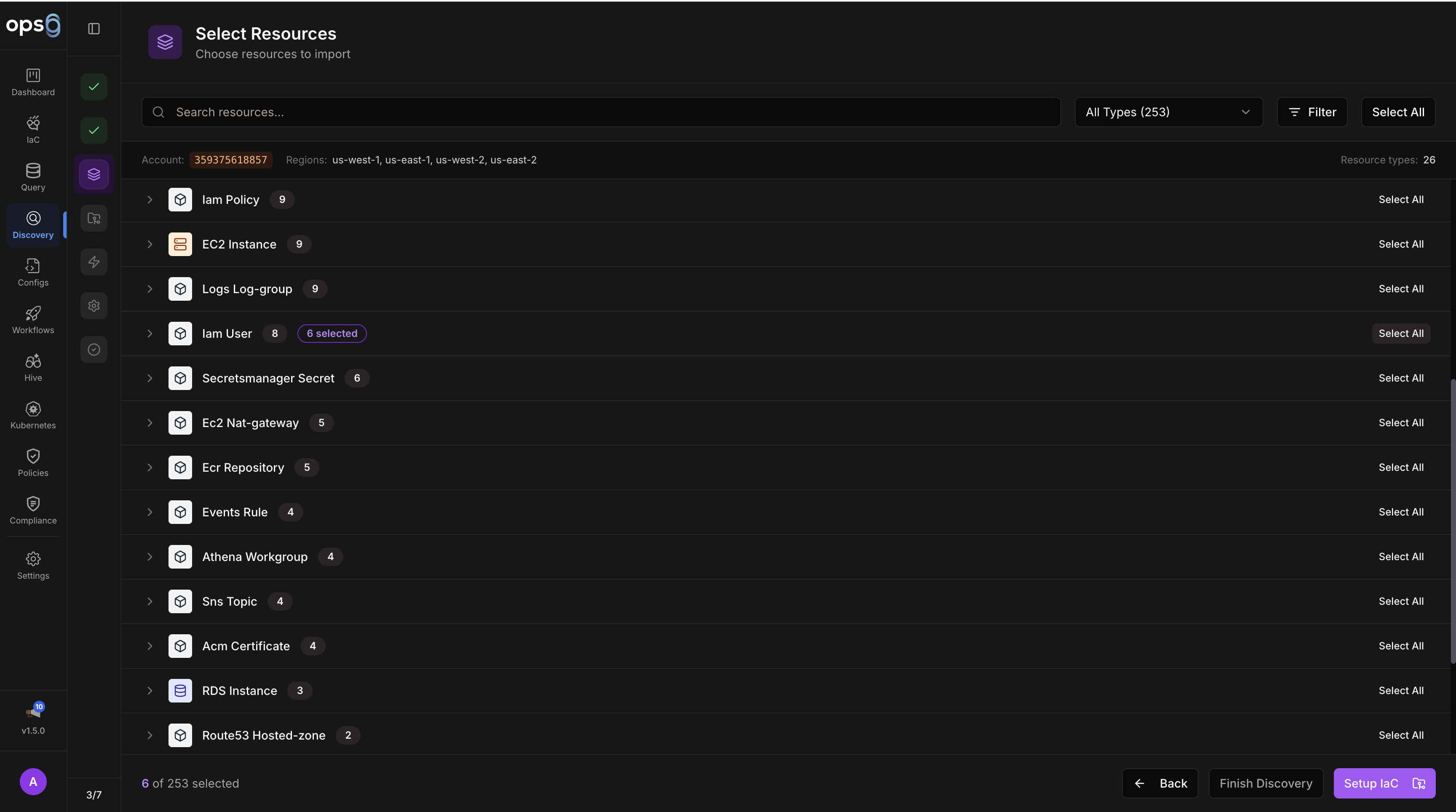 Run a discovery scan to find existing cloud resources across AWS, GCP, Azure, and Oracle Cloud.