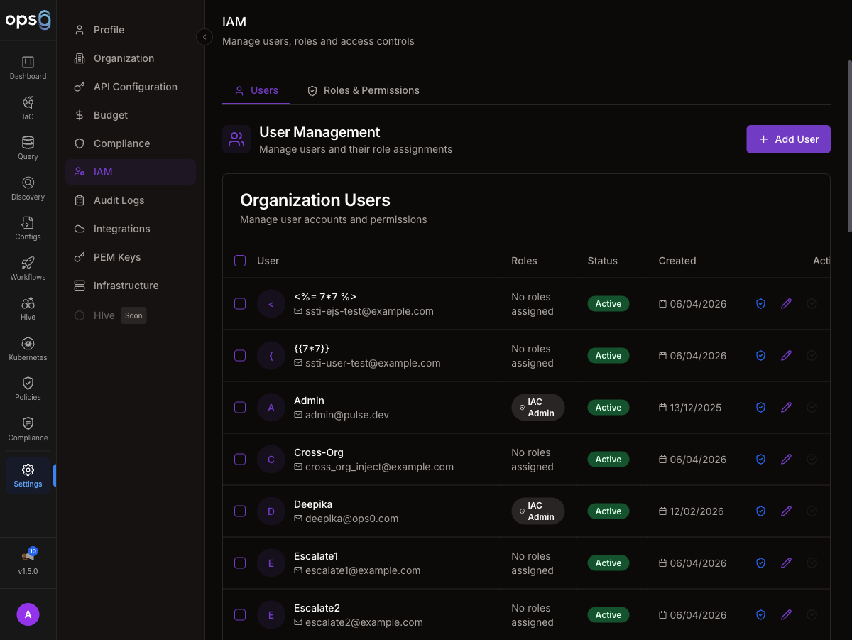 Manage users, teams, roles, and permissions. Control who can access what in your ops0 organization.